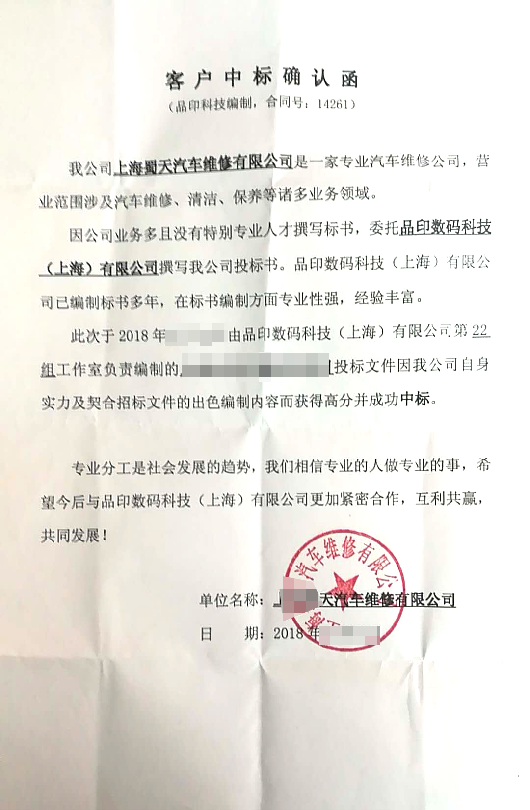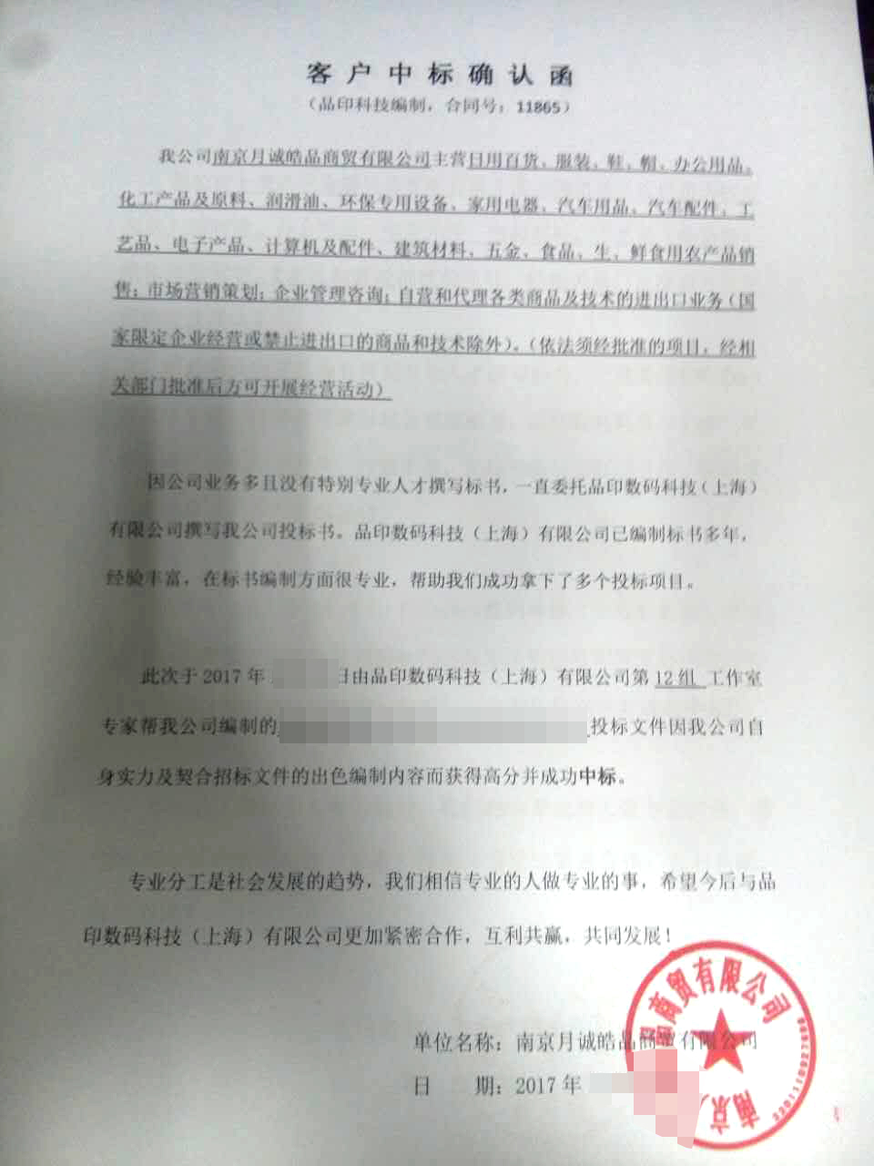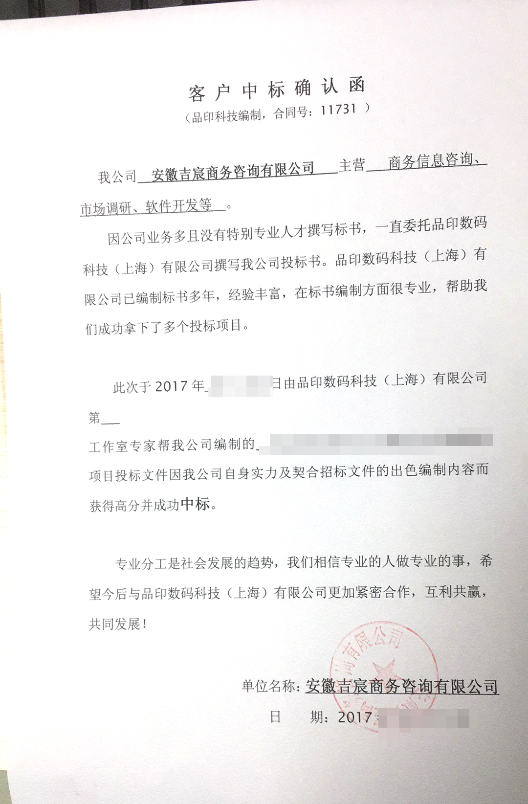 客户中标见证