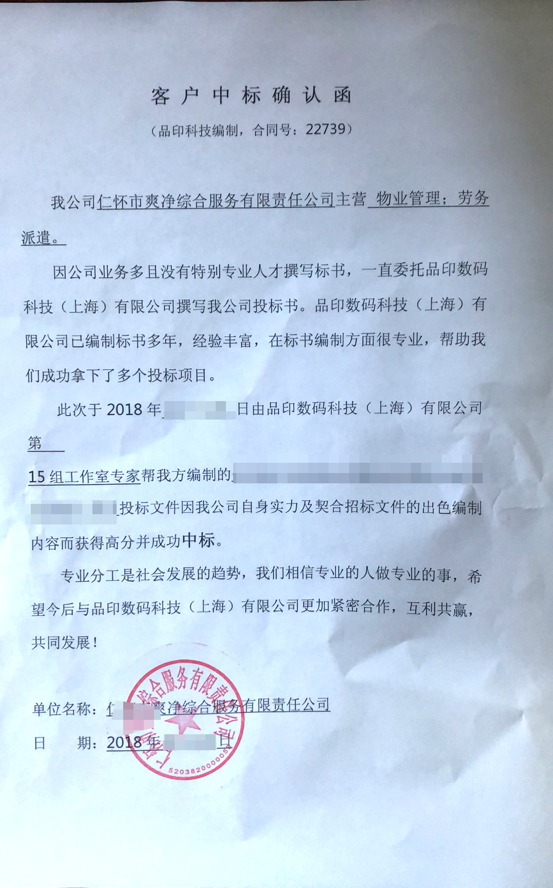 保洁中标函27